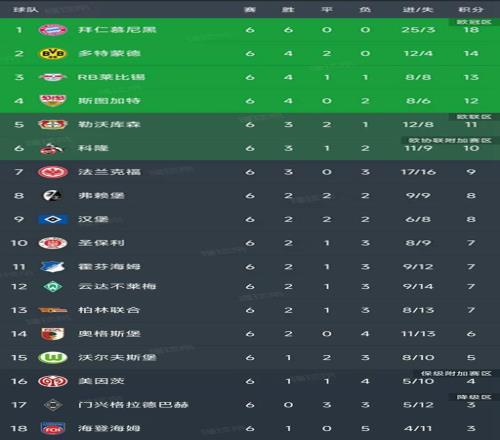 北京时间10月7日,本赛季的德甲联赛已经进行到第6轮,我们一起看看目前的积分榜变动!