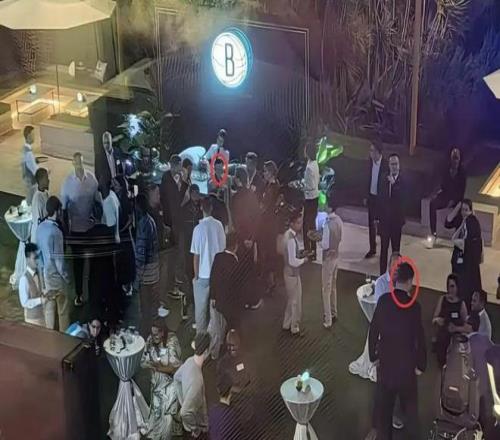 疑似澳门某酒店工作人员晒出的一组照片显示,蔡崇信等人正在与篮网队球员聚会。虽然照片有些模糊,但依稀还是能够辨认出三人。
